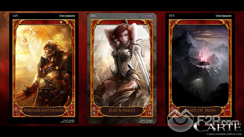 The continent of Arcadia is entering the bloodiest conflict it has ever seen, and the battles will play out on the card table of Carte. Each deck is led by a Hero card of the player's choice, with heroes from the storyline such as the elf Serya Tasdelen or the Evil King Belial available. Players then build a 64-card deck around their hero, with cards representing not only the armies of their nation but also important storyline events or signature weapons.
