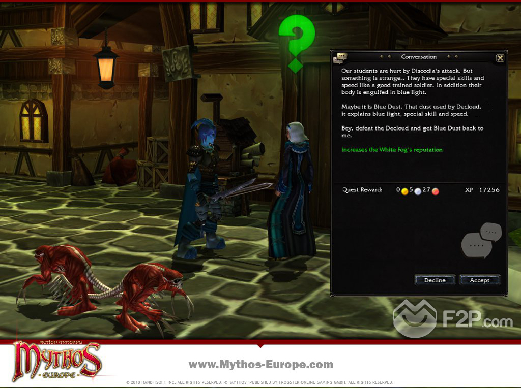 The Mythos quest system lets players play a part in the story. The many diverse quests can be carried out either by plucky lone adventurers, or in groups of up to five players. There are rewards to be had in the form of abundant experience points, or special items which will also enable faster levelling.For those for whom experience points or valuable armour and weapon components arent enough, they ought to keep an eye on the numerous factions in the game. This is where the player can take on special tasks in order to raise their reputation within a faction. Once the player has achieved a certain level, they then gain access to special merchants who can offer them a range of exclusive and powerful items.