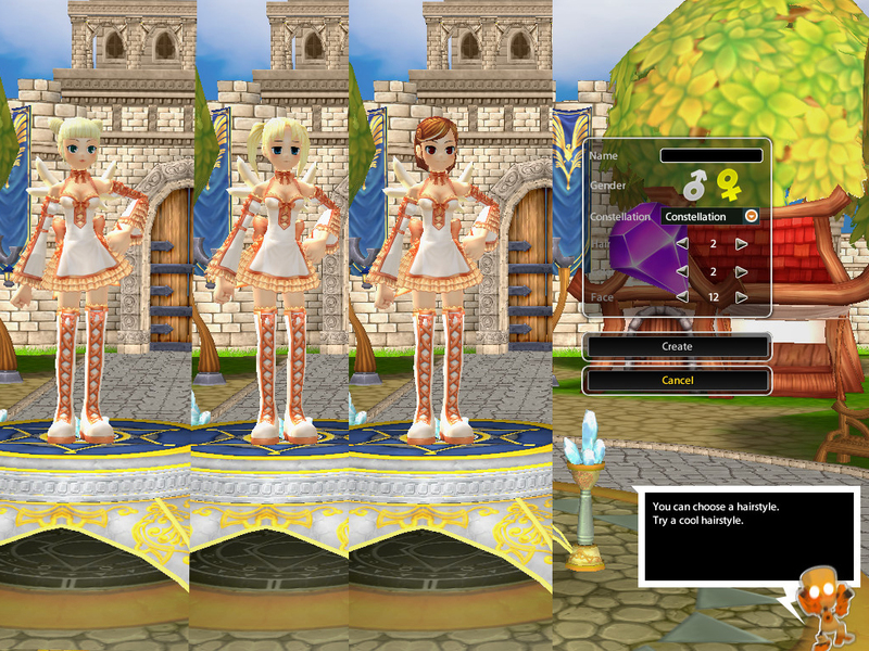 The game play goes the same as for any other MMORPG game. We start by creating our character, we choose hairstyle, face and hair color. There is also constellation system for which is said that there will be costumes later in the game for each sign. For the most part, the game play should be familiar to anyone who has ever played a MMORPG. Youll talk to NPCs that will give you quests, which mostly boil down to kill x amount of cute creatures and then delivering items from one place to the next. Youve got a quest tracker, monsters dropping loot, items you can sell to merchants, a hot bar that you can fill with skills, etc. But instead of saying all this its best to simply show you.