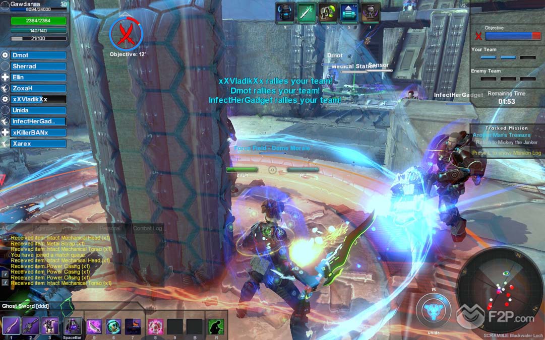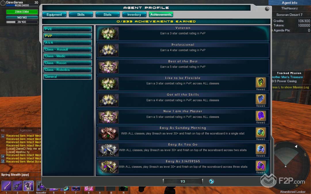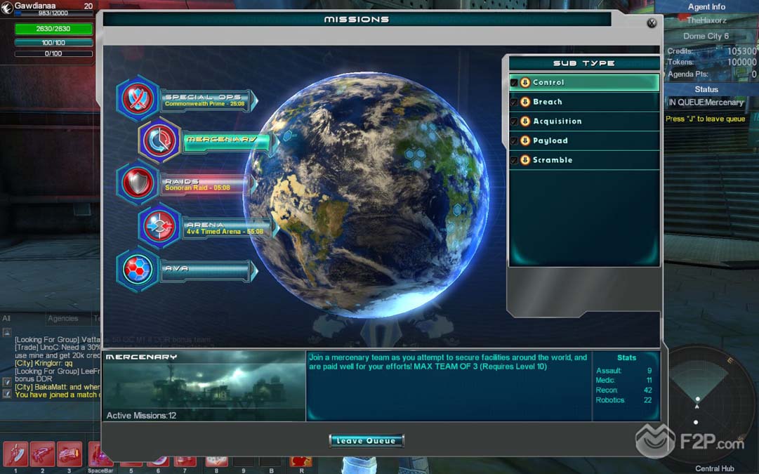 PvP matches have several game types, push the cart, domination, deathmatch, robots and so on, as always you get experience and other stuff performing this kind of content. Arena is the classic player combat ruleset taken into Global Agenda Free Agent world, funny and competitive. AvA content is an extension of this type, that takes alliances (group of clans) into the world domination by conquering hexes that will grant them benefits and resources.
