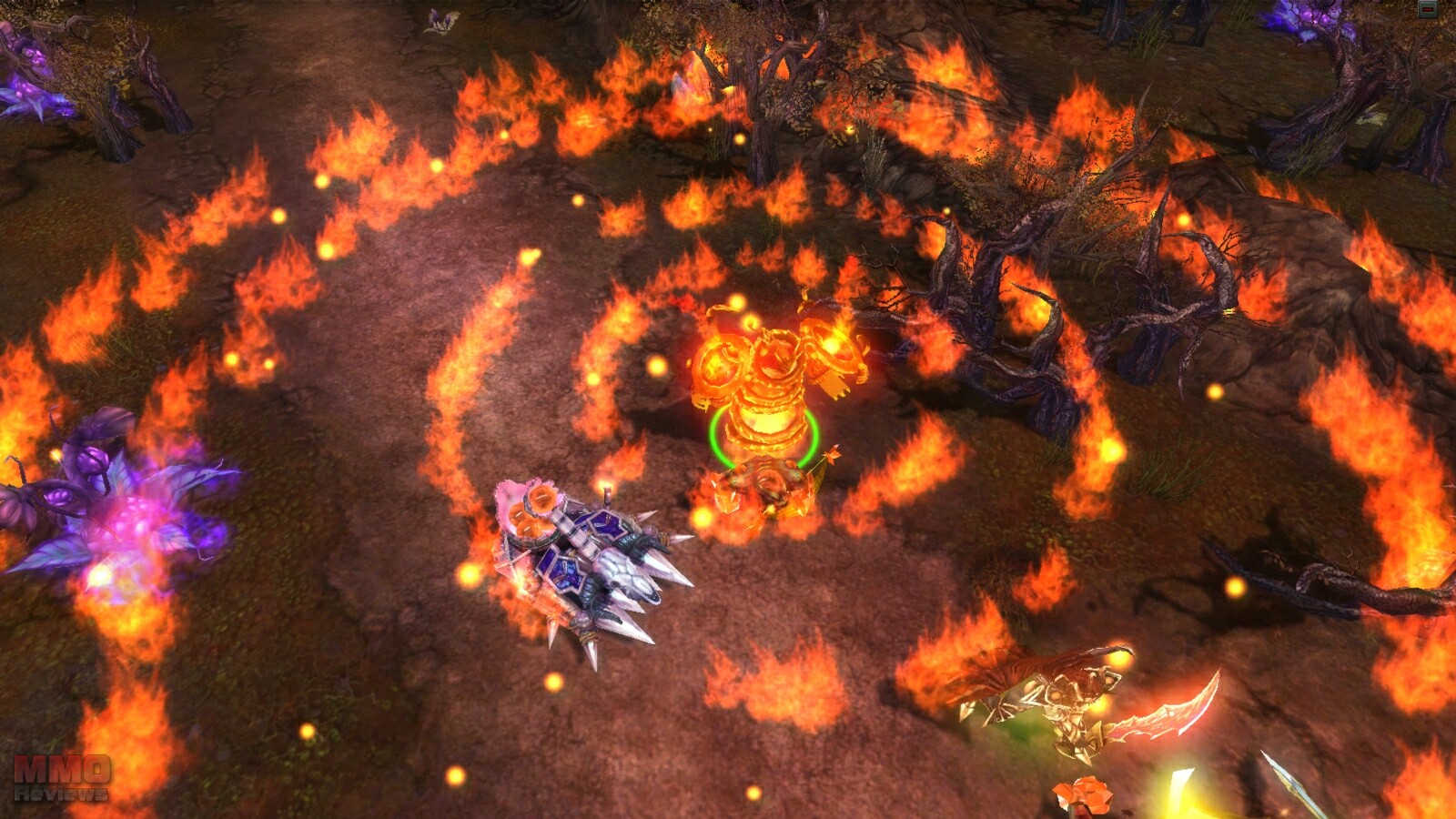Ring of Fire – (E) Summons a shield to protect you. When destroyed, the shield spews fire damaging nearby enemies.