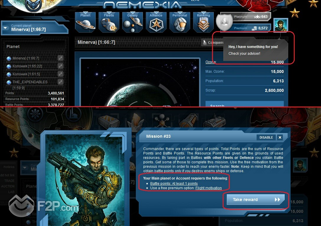 - Showing a message "Hey, check advisor" when a mission is completed and the player can take the reward