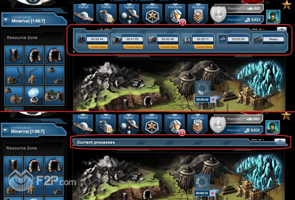 - Players can easily check their current processes in the buildings zones, shipyard, starport or laboratory in only 1 menu.