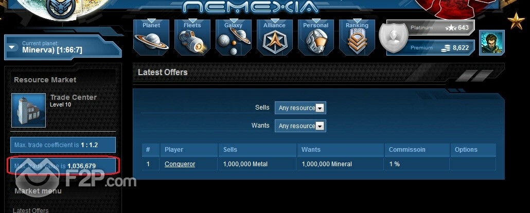 - Limitation of the resource the player can "store" in the Trade center (resource points*20 = max. trade value for the account)