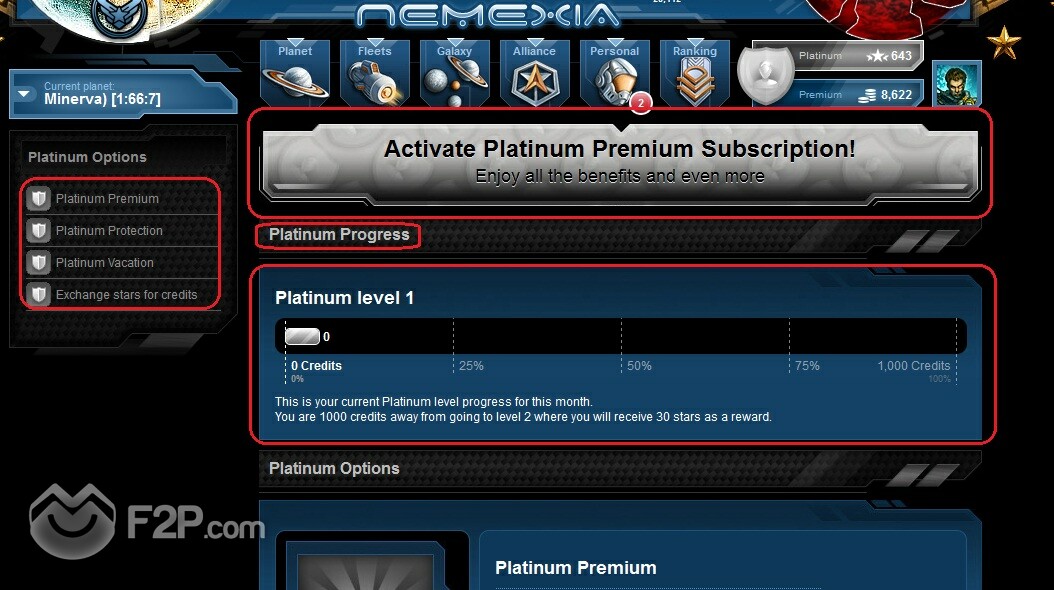 - Player can activate Platinum account for the price of 20 stars (for 7 days) whenever he wants, no limits